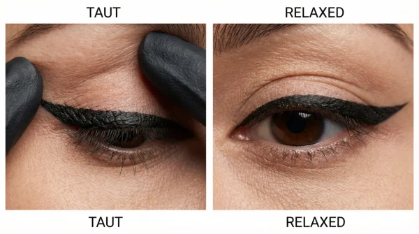 - Liquid eyeliner ages hooded eyes instantly with the traditional stretch technique.